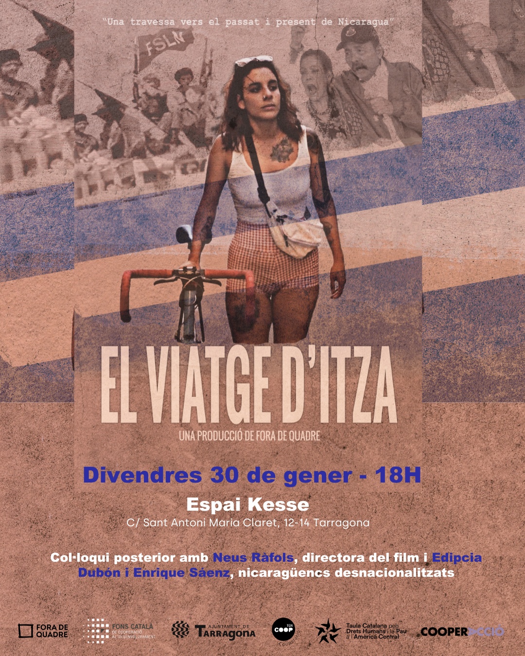 Tindrem el visionat del documental El viatge d’Itza, produït pel Fons Català de Cooperació, Fora de Quadre i Cabal Films. El documental aborda la crisi de drets humans a Nicaragua i els exilis forçats sota el govern d’Ortega i Murillo, a través de la història personal d’Itza López. Comptarem amb la participació de la directora, Neus Ràfols, i un espai de diàleg amb Edipcia Dubón i Enrique Sáenz, ambdós nicaragüencs desnacionalitzats, que compartiran les seves vivències d’exili, refugi i reubicació davant la persecució transnacional del règim d’Ortega, des de dues etapes vitals diferents. Us hi esperem!