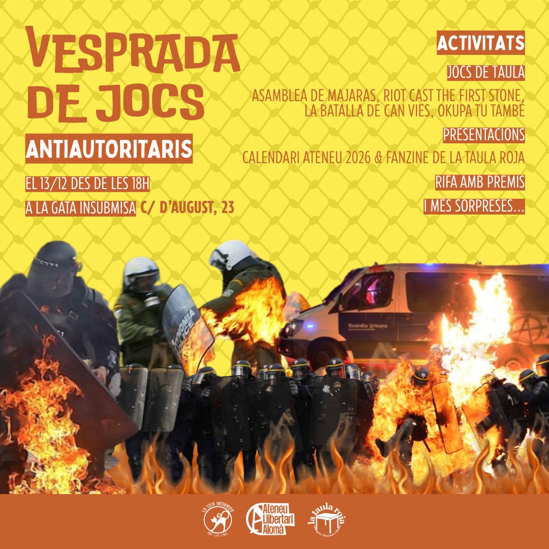 Aquest any tindrem jocs de taula amb la temàtica del dia, farem una rifa amb les persones assistents, presentarem el calendari de l'ateneu i el nou fanzine de La Taula Roja. Vine i gaudeix de tot això i més a La Gata Insubmisa.